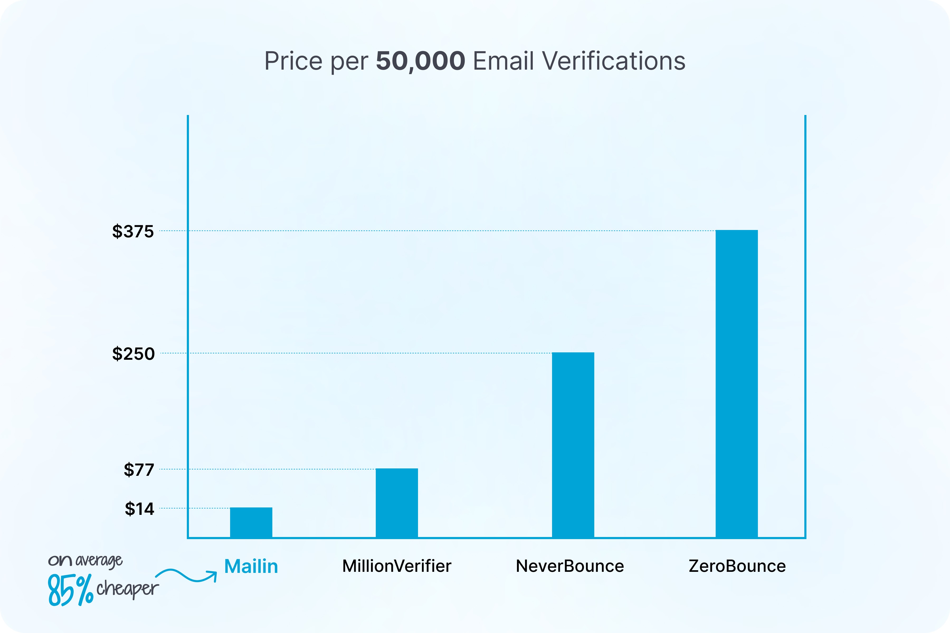 We save our users hundreds of thousands every month by running verification at cost including catch-all emails. You get the same quality results as the top verifiers in the industry, at prices that are on average 85% cheaper. We build tools that save you money, and we’ll keep building them. That’s why thousands of businesses trust Mailin as their cold email partner.